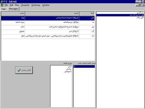 اما قدرت تجزيه و تركيب جملات ساده را دارد. كه يك نمونة آن را در شكل زير ميبينيد: