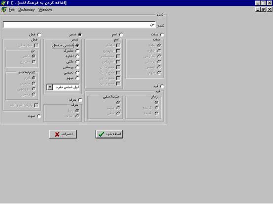 اين نرمافزار شامل فرهنگ لغتي ميباشد كه براي