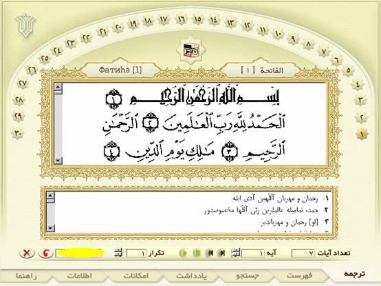 ü امكان تكرار قرائت هر آيه تا 5 بار.