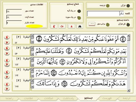 ü امكان بررسي آيات قبل و بعد از مورد پيدا شده.