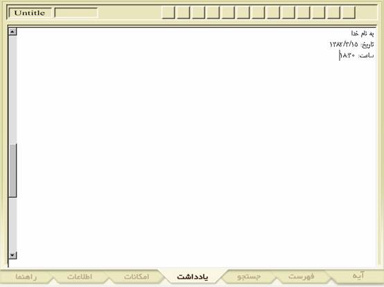 در هر صفحه هر يك از قسمتهاي اين نرمافزار بررسي خواهد شد و امكانات آن قسمت ذكر